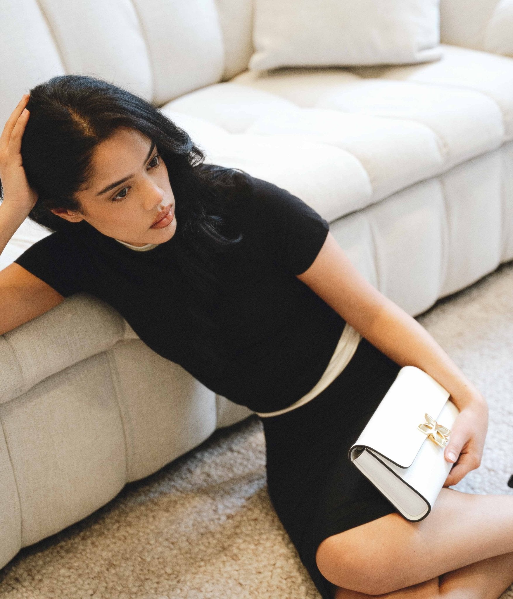 Designed to suit every moment of the day, it can be carried by hand for a chic, structured look, or worn on the shoulder thanks to its short, removable strap, offering a more relaxed silhouette without compromising on elegance.