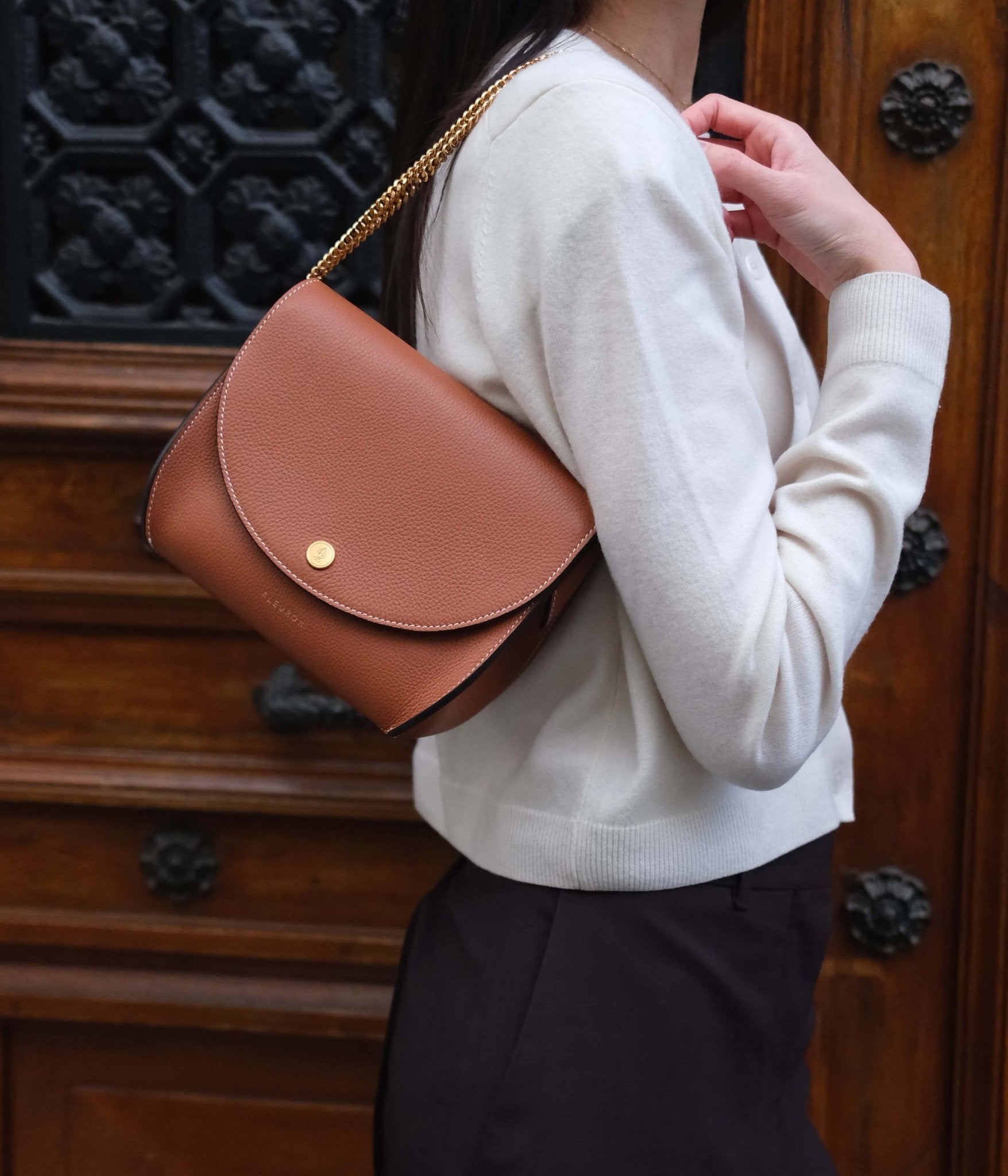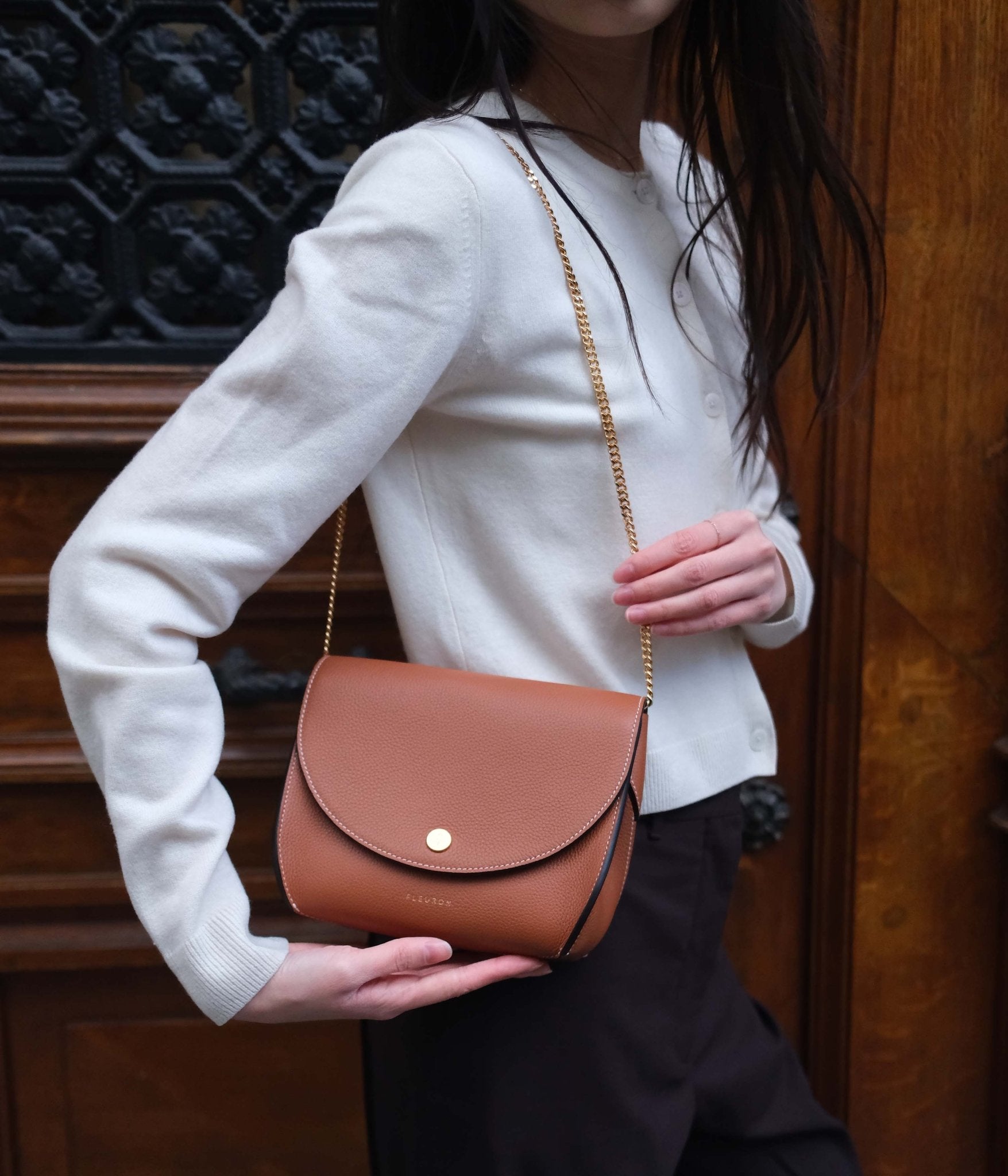 Let yourself be charmed by the natural appeal of the Mini Magnolia in Caramel, a warm, luminous shade that adds a touch of soft character to any outfit. Handcrafted in our Italian workshop, this crossbody bag reflects the excellence of Italian craftsmanship, combining clean lines with discreet everyday functionality.