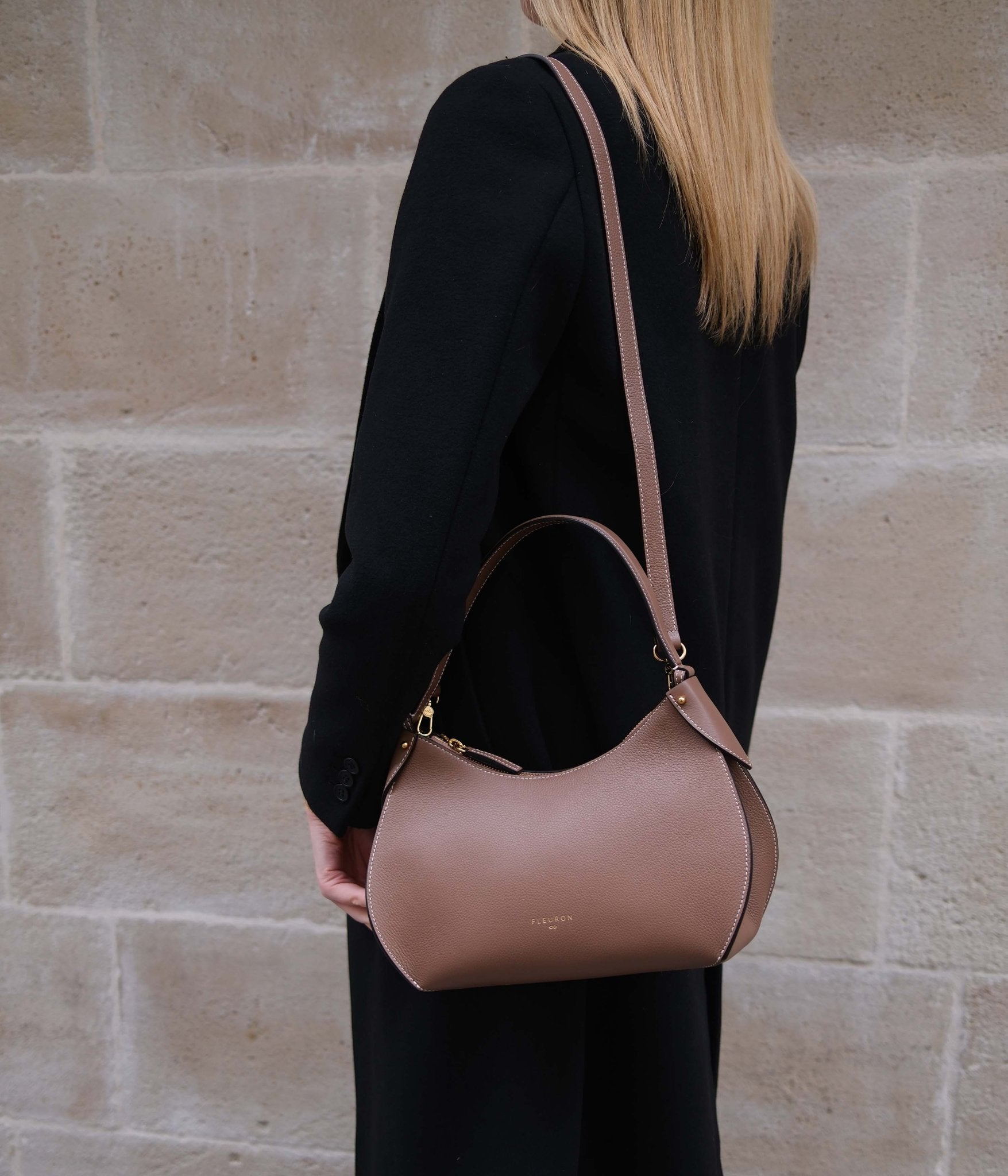 With its soft, nuanced tone, our Marron Glacé Pivoine bag brings a natural and understated elegance to your wardrobe. This light brown with warm undertones, somewhere between soft cocoa and creamy beige, pairs beautifully with refined, light-toned outfits. It goes especially well with shades like ecru, blush pink, or warm beige for a gentle, balanced look. In colder months, it also complements deeper hues like slate blue, sage green, or charcoal grey, creating a clean and sophisticated silhouette.