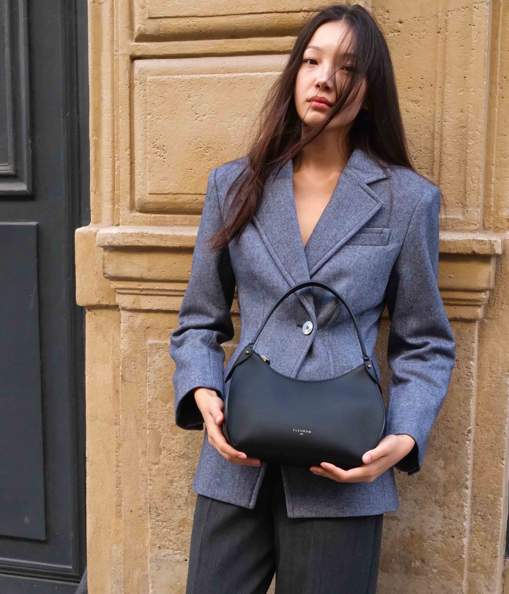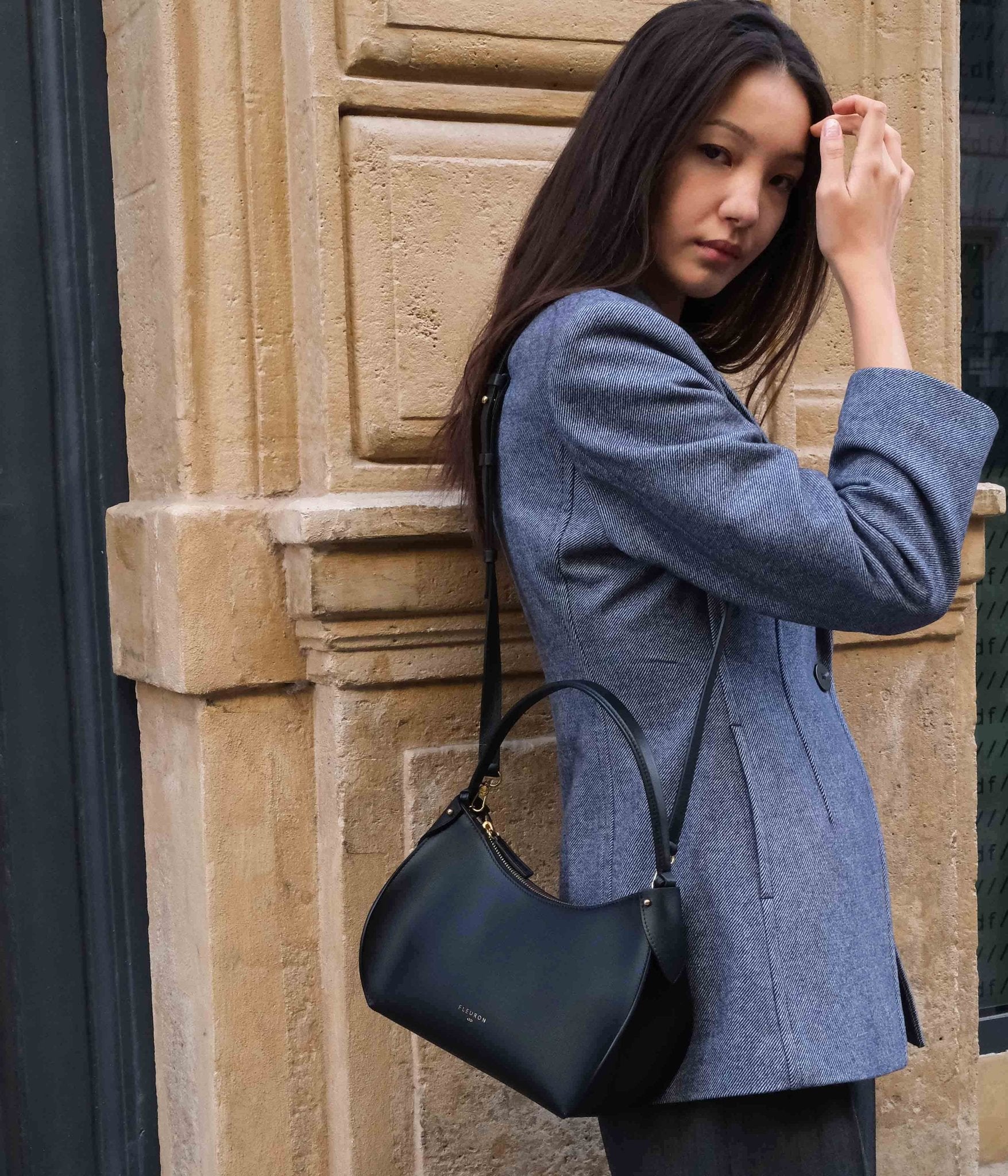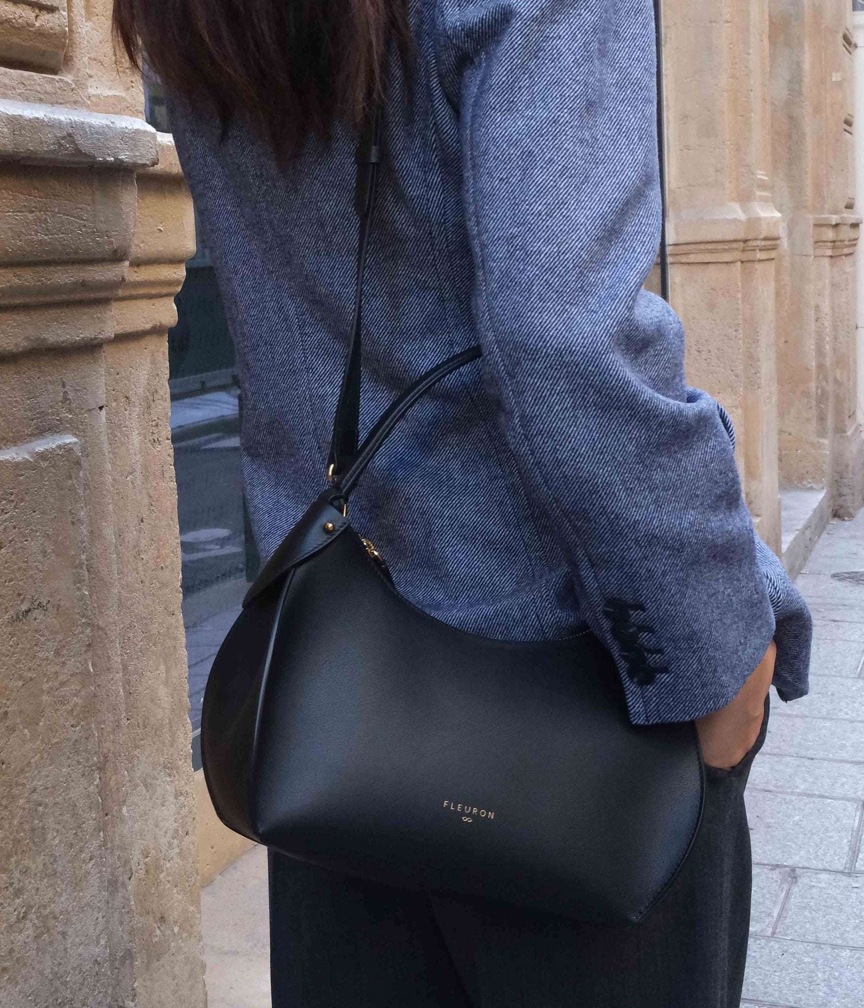 Our black handbag is carefully handcrafted in our workshops in Italy, using the finest smooth calf leather, complemented by refined gold finishes. Whether carried by hand or on the shoulder with its additional strap, this bag is a perfect complement to any look. Its secure zipper opens to a beige interior, offering ample and elegant space for your essentials.