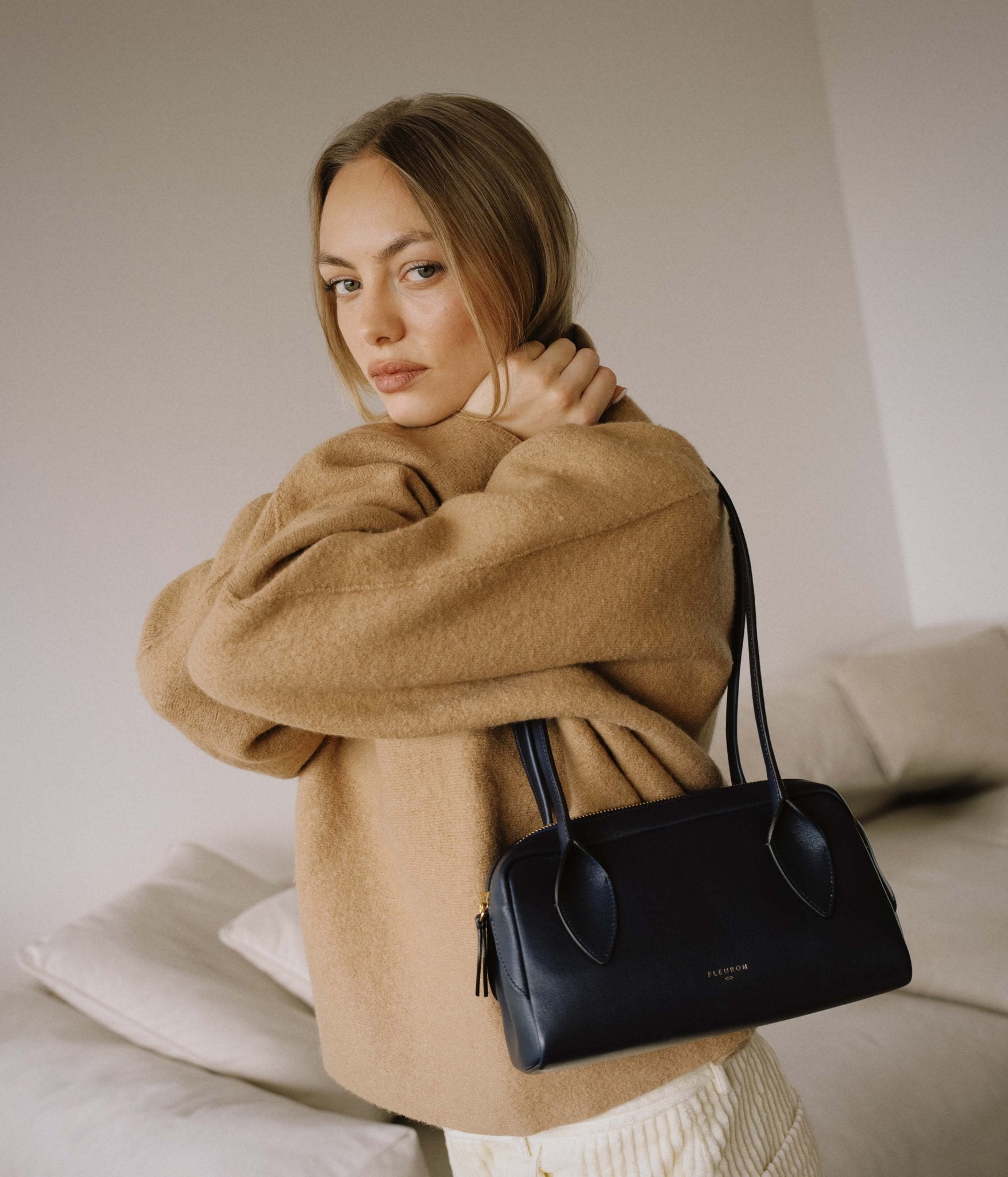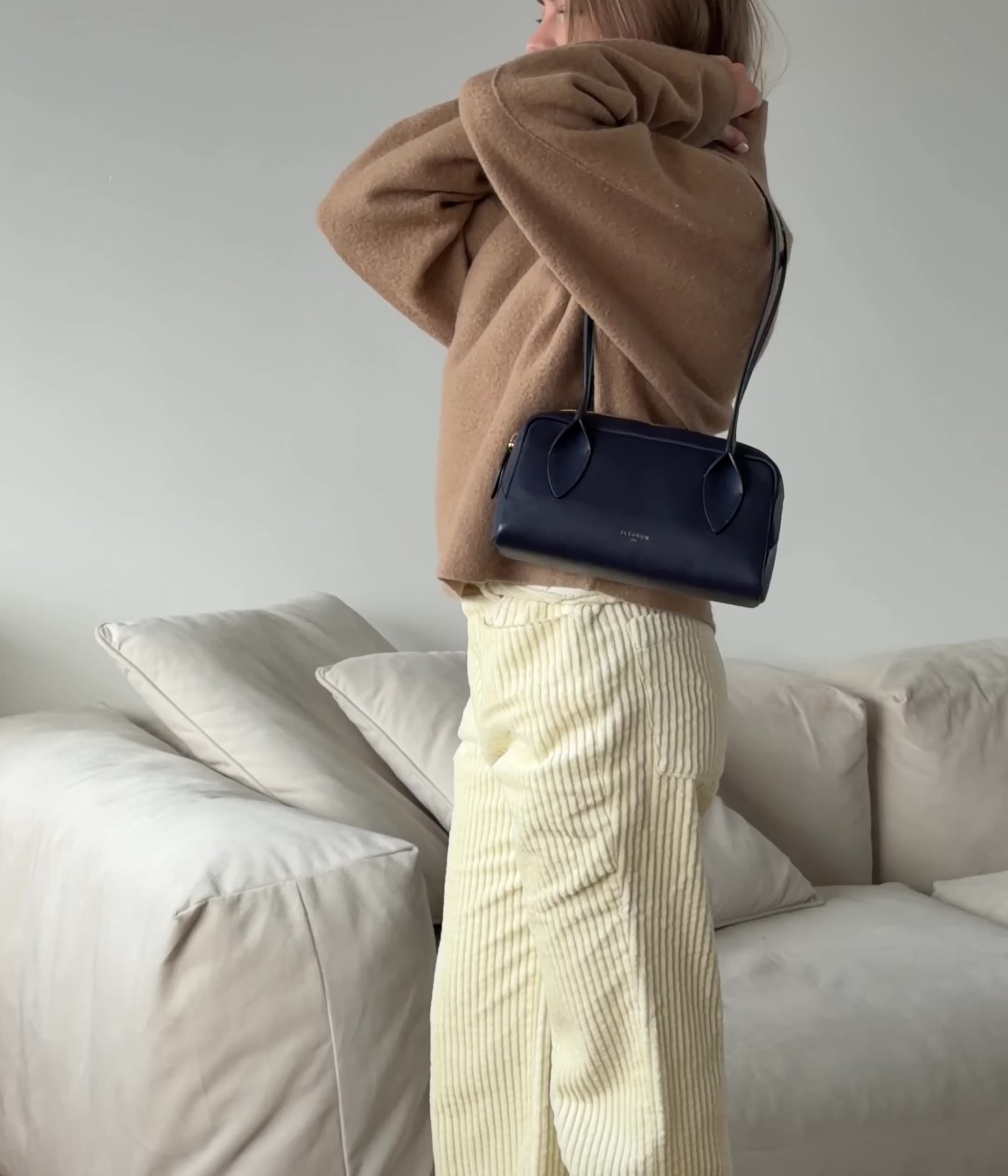 The Mini Bambou in Bleu Nuit, designed in Paris and handcrafted in our Italian atelier, embodies deep and timeless elegance. Its rich, sophisticated midnight blue shade adds a touch of character to any outfit, whether neutral or bold, offering a style that feels both classic and contemporary.